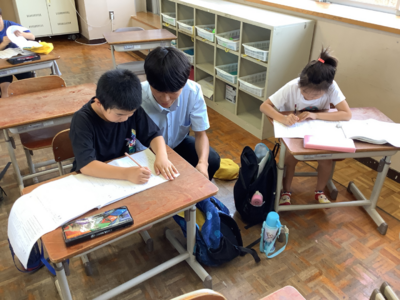 児童は、地元の高校のお兄ちゃん、お姉ちゃんから勉強を教えてもらうということでとても喜び、熱心に楽しく学習に取り組むことができました。