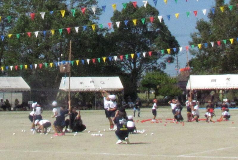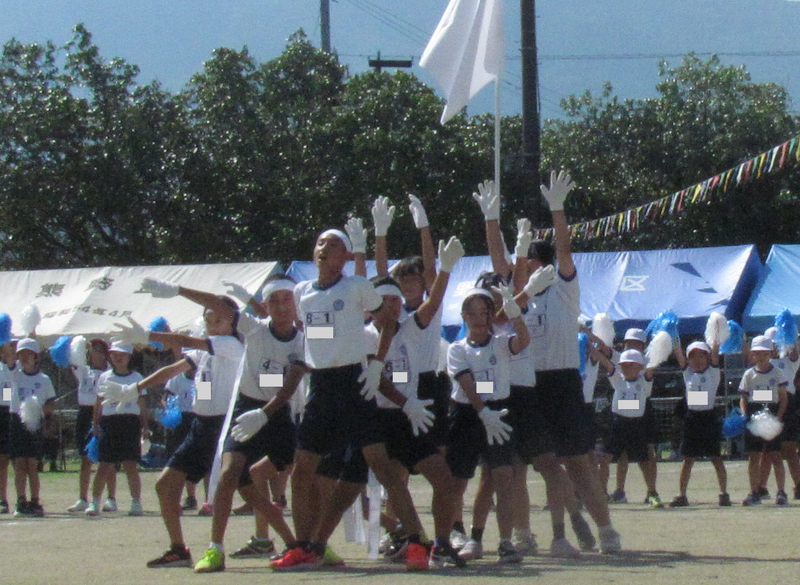 <応援合戦 最後には全員で「フレーフレー岡原!」と岡原小にエールを贈りました>