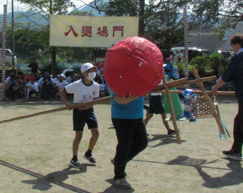 全校児童による「ボール回し」。みんなで力を合わせて、心もつなぎました。