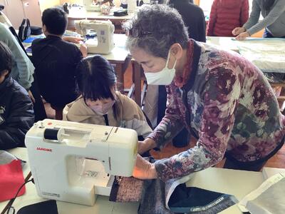 現在、5年生は家庭科「ミシンでソーイング」の学習で、エプロンを製作しています。学習支援ボランティアとして、地域の方にも御指導いただき、製作を進めています。初めてのミシンに、ドキドキしながらも、楽しく学習中です。