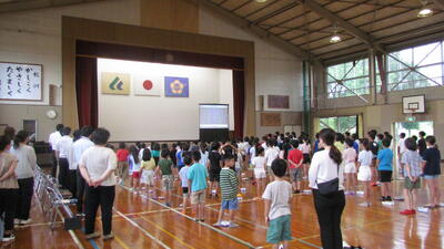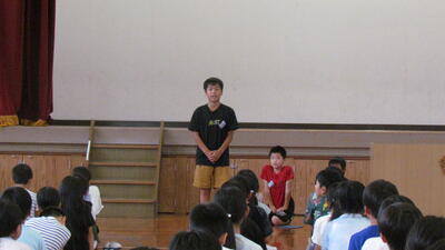 まず、2年生、4年生、6年生の代表が、夏休みの思い出と2学期に頑張りたいことを発表しました。
