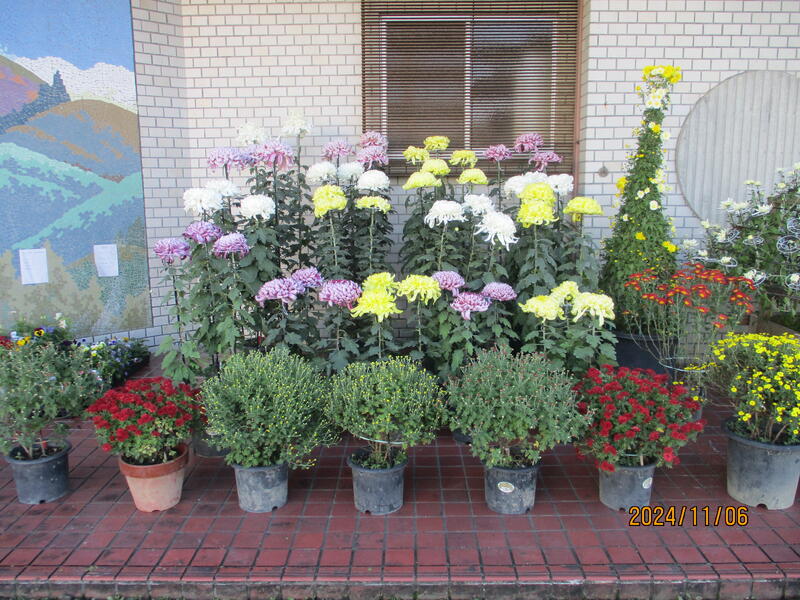 今年も、開墾地区の城本さんの御厚意により、玄関横に菊の花が飾られました。
