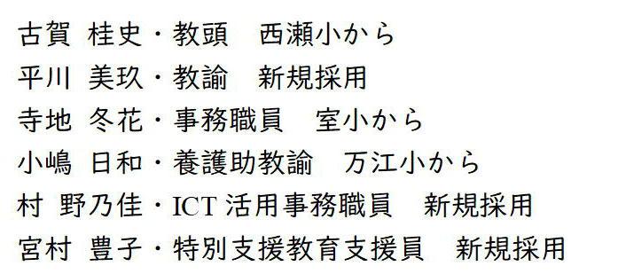 今回の異動で4月1日付けで本校に新たにおいでいただいた先生方です。