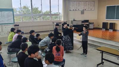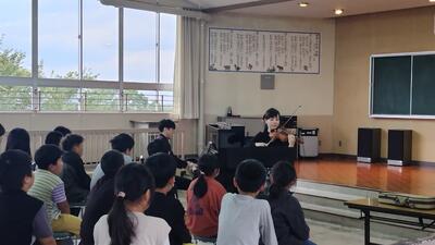 今日は、熊本県立劇場のアウトリーチ事業として、4年生、5年生を対象に、クラッシックのプロ奏者であるバイオリンの緒方愛子さん、ピアノの植村和彦さんをお招きして、音楽室で本物の演奏を聴くことができました。子供たちもすごく熱心に聴いていました。葉加瀬太郎さんのエトピリカという曲の演奏もありました。地方の小さな町にとって、なかなかクラッシックの演奏を聴く機会は少ないですが、こうした経験が、いつか、どこかで子供たちの未来につながるかもしれません。こうした機会を作っていただいたあさぎり町教育委員会に感謝です!