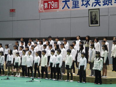 今日、人吉市のスポーツパレスで第79回犬童球渓音楽祭が行われました。ステージに上がるまでは、緊張していた子供たちでしたが、ステージ上では堂々と元気な声で歌うことができました。音楽祭への出場を目標にがんばること、緊張しながらもそのステージに立つこと、そうした経験が子供たちの未来につながるのかなぁと改めて思いました。