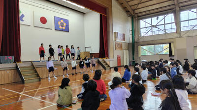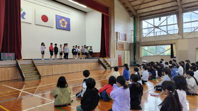 今朝の児童集会は1年生の発表でした。みんな緊張しながらも、これまでの音楽での学習の成果を発揮し、カスタネットやピアニカを演奏しました。また、「やまびこさん」の合唱では、フロアにいた先輩児童たちがアドリブで、「やまびこさん」「まねっこさん」「ヤッホー」などの応答があり、とてもいい感じでした。さすが、岡原っ子です。カッコよく言えば、これぞ、経験の蓄積と伝承です。