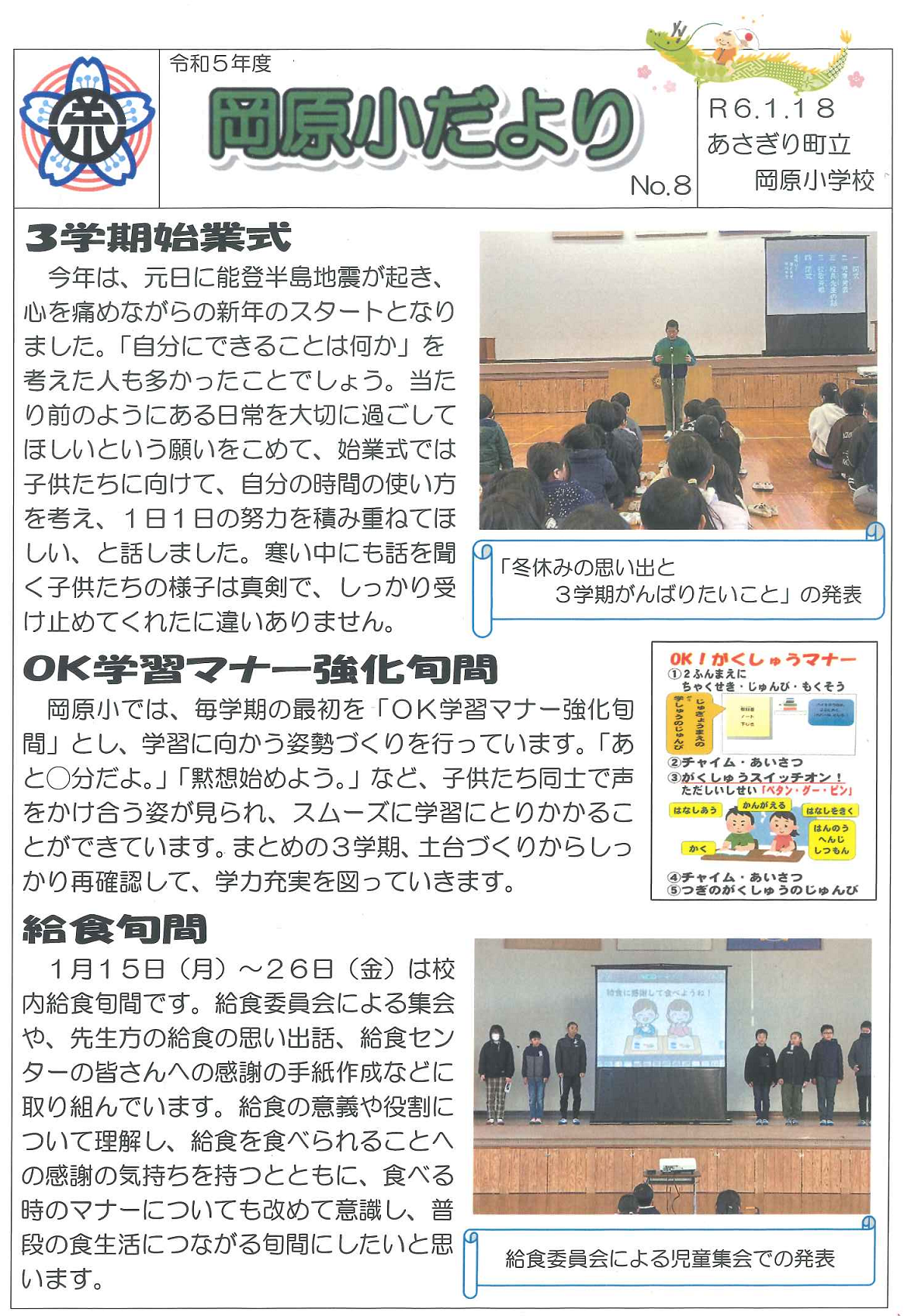 またこうして岡原小学校と縁ができ、大変うれしく思います。・・