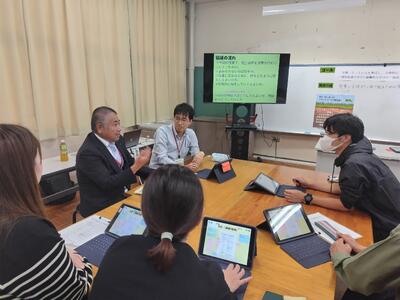そこで、今、岡原小では研究授業の度に、球磨教育事務所の指導主事に来ていただき、授業についての指導を受け、授業力向上を図っています。これだけ、球磨教育事務所の指導主事の指導を受けている学校はないと自負しています。先生たちのやる気の現れです。研究授業の後は、授業研究会として、その授業の良かったところ、悪かったところを話し合い、指導主事からの指導を受け、自分の授業改善を図っています。