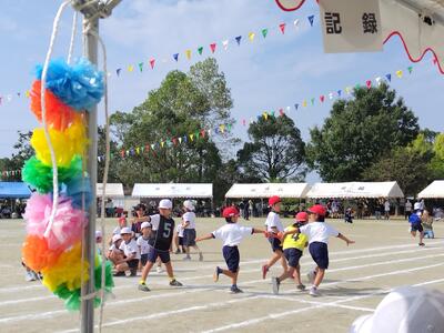 今日は岡原小学校の運動会でした。心配していた天気も、さわやかな秋晴れの朝で、子供たちはこれまでの練習の成果を発揮することができました。
