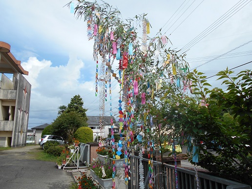 天気の様子を見ながら正門の近くに飾る予定です。どんな願い事が書かれているでしょうか?