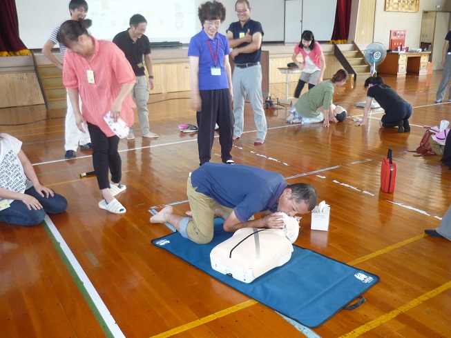 授業参観の後は、体育館で保護者と5・6年生合同の心肺蘇生法講習会がありました。