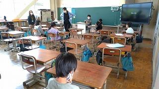 授業の終了後、PTA総会は密をさけるために各教室と会議室のリモートで行いました。