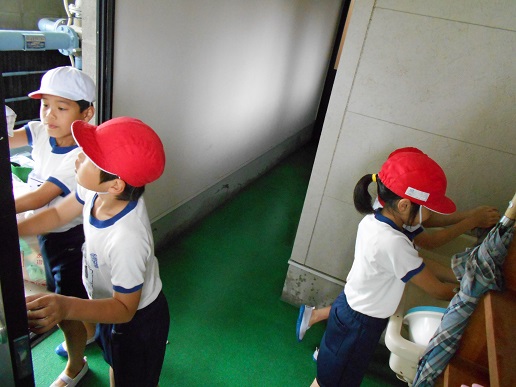業間の時間に火災の避難訓練を実施しました。みんな真剣に訓練に参加しました。