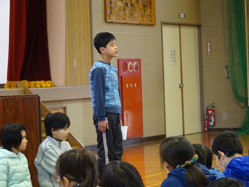 三学期が始まりました。今年もよろしくお願いします。始業式では3人の児童が冬休みの思い出とともに、3学期の目標を発表してくれました。