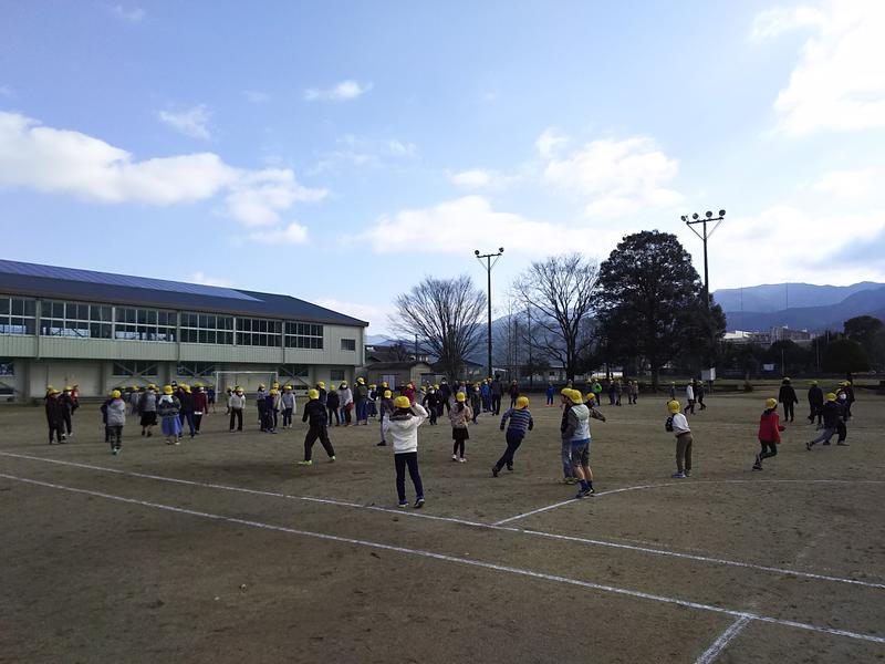 2月の体力アップタイムは「リズムなわとび」のはずですが・・・天気が思わしくなく、大縄跳び続行中!全校児童が体育館に集合し、夢中になって取り組むいい表情が見られます。