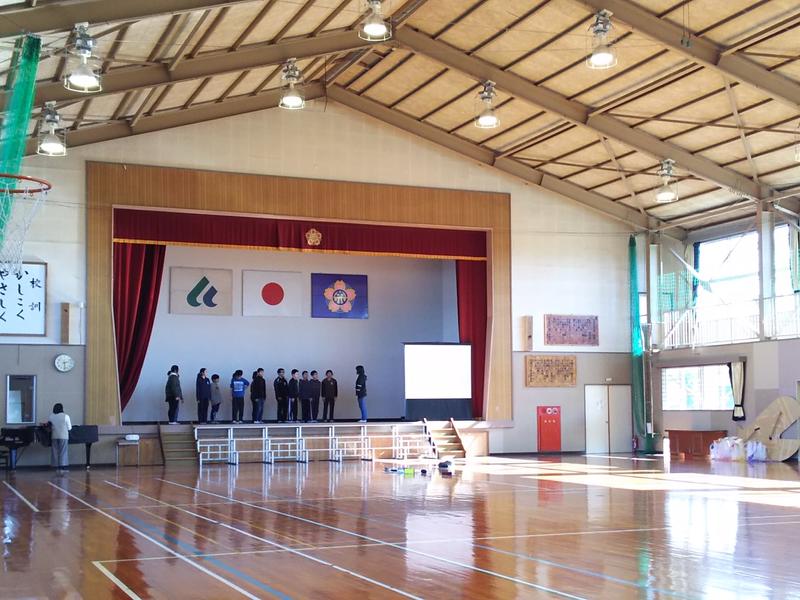 岡原小学校の体育館が、あっという間にミュージカルの舞台に変身です!