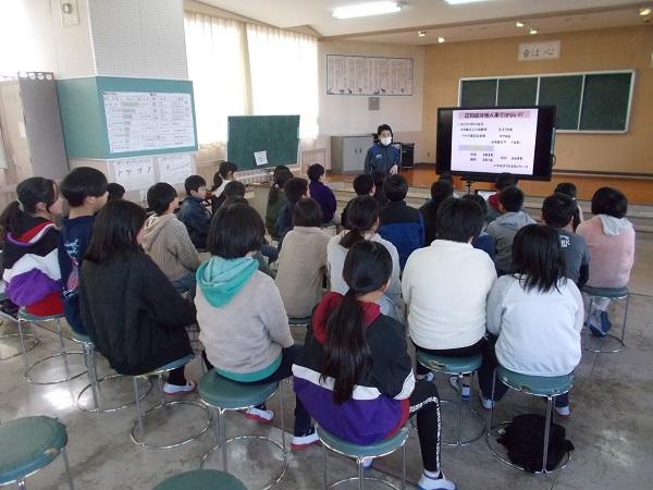 1月22日(水)の児童集会では、給食委員会の児童による「栄養バランスの良い朝食をとる大切さ」、栄養教諭浦川先生から「給食ができるまで」について、発表や話をしていただきました。
