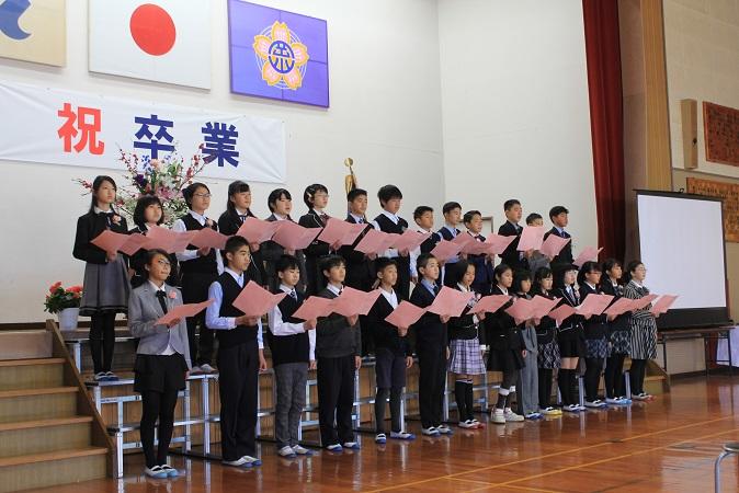 3月24日(火)「卒業証書授与式」が行われました。新型コロナウイルス感染拡大防止のため、卒業生、保護者、教職員、教育委員会代表での実施となりました。練習も思うようにできなかった中、卒業生は思い出を胸に、頼もしく学び舎を巣立っていきました。
