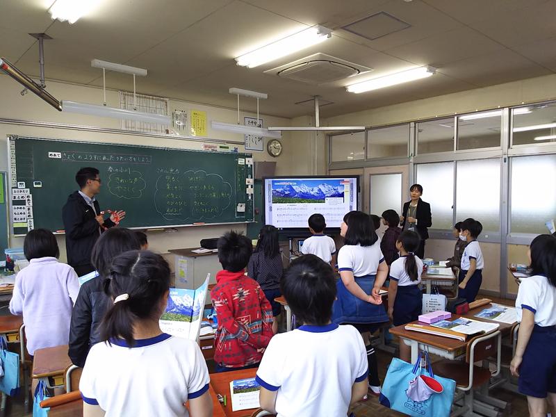 4月17日(水)と19日(金)の二日間、アメリカからのお客さんが岡原小学校に遊びに来てくれました。スカイラーという大学を出たばかりの若い男性で、子ども達と一緒に勉強したり、遊んだりしてもらい、子ども達も大喜びでした。
