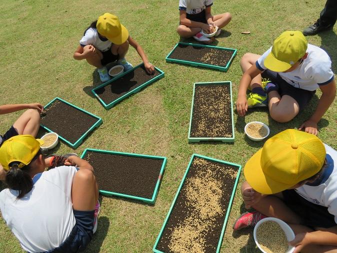 水分管理がとても大切ということです。全体に水がいきわたるように、また、種が飛ばないように、じょうろやシャワーで何回も水やりをしました。