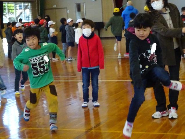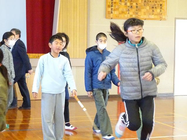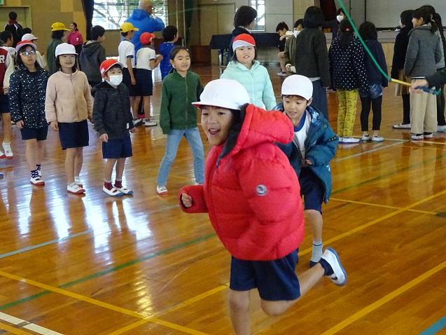 2月の体力アップタイムは「リズムなわとび」のはずですが・・・天気が思わしくなく、大縄跳び続行中!全校児童が体育館に集合し、夢中になって取り組むいい表情が見られます。