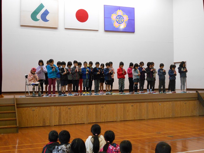 今日の表現集会は3年生の発表でした。国語の学習で調べたことを発表したり、