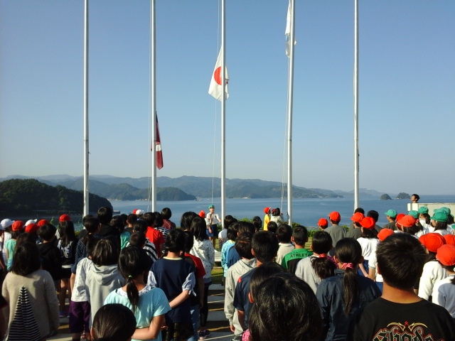 おはようございます。朝の集いに参加しています。みんな早朝からぱっちり目覚めていました。今日もいい天気のようです。活動が楽しみです。