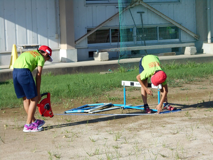 陸上部は今度の大会へ向けて、幅跳びの練習をしたり、ハードルの練習をしたりしていました。