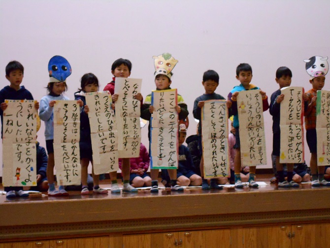 最初に「干支」のお話を発表した後に、今年のめあてを全員が言いました。