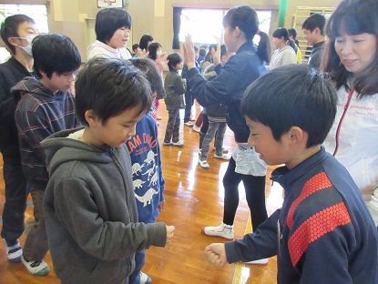 まずは6年生と勝ち抜きじゃんけんゲーム!