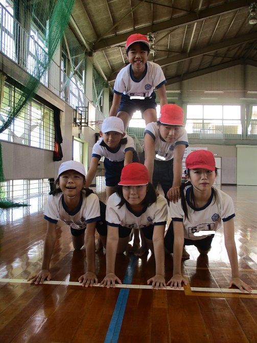 今日は5・6年生の練習をご紹介!高学年は組体操にチャレンジします。1つの動きを協力して作り上げる達成感を感じながら、毎日一生懸命練習に取り組んでいるようです。