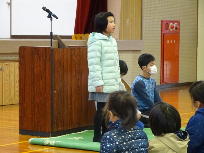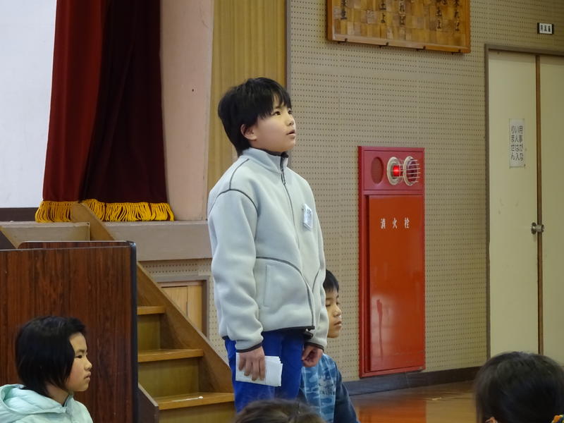 三学期が始まりました。今年もよろしくお願いします。始業式では3人の児童が冬休みの思い出とともに、3学期の目標を発表してくれました。