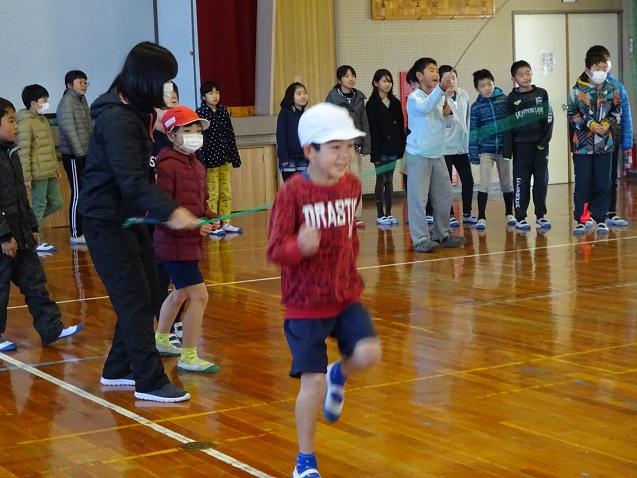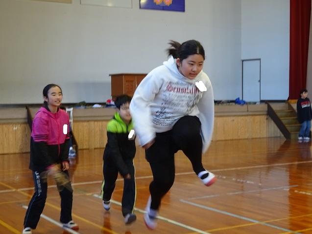 2月の体力アップタイムは「リズムなわとび」のはずですが・・・天気が思わしくなく、大縄跳び続行中!全校児童が体育館に集合し、夢中になって取り組むいい表情が見られます。