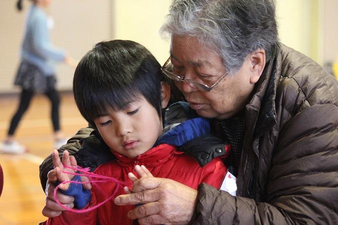 大好きなおじいちゃんおばあちゃんに、けん玉やあやとりの遊び方を分かりやすく教えてもらい子ども達はとっても嬉しそうでいつもに増して目がキラキラです!