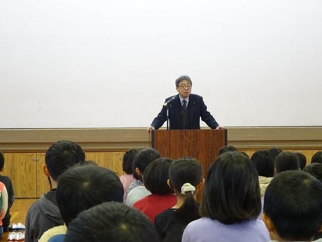 全校集会では、校長先生から集団行動についてお話していただきました。