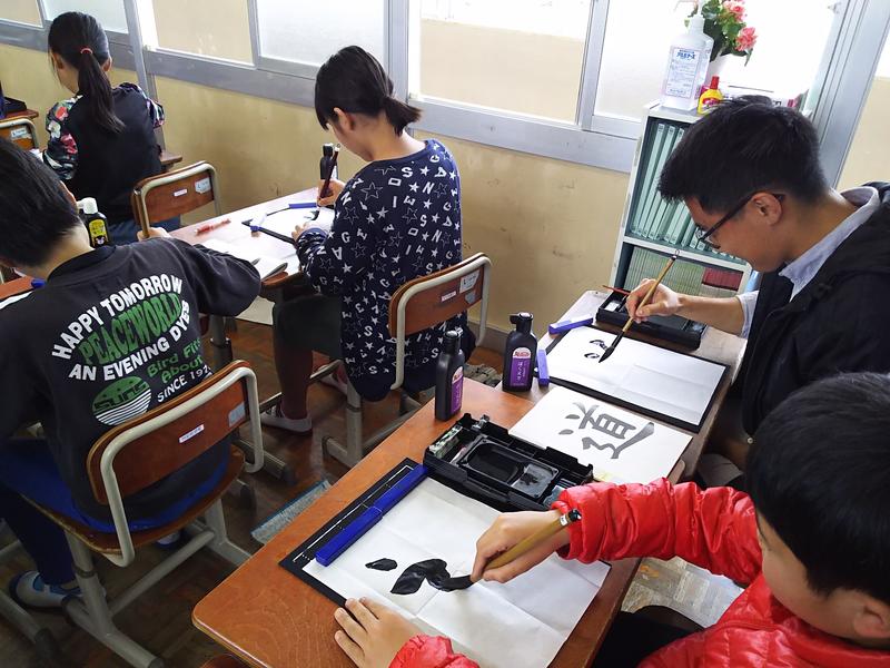 また、子ども達にとっては、いつも学校で勉強している英語を実際に使う、絶好の機会にもなり、昼休みには、2年生の子ども達が、職員室で休んでいるスカイラーを「レッツゴー、グランド!」と誘いにきて、運動場でスカイラーと一緒にサッカーや鬼ごっこをしていました。岡原小の子ども達の英語力、期待できます!