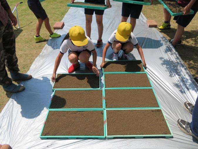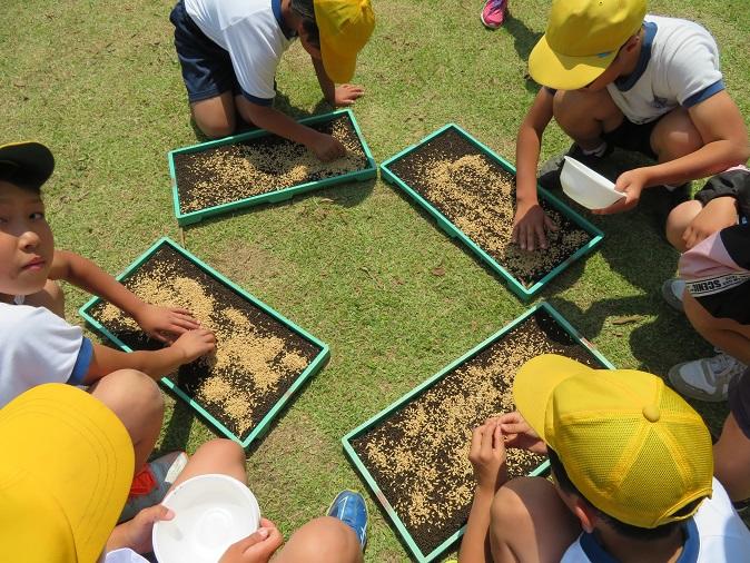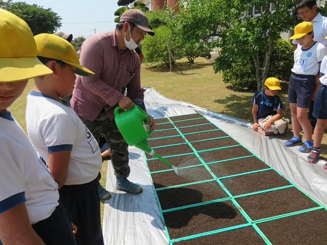 水分管理がとても大切ということです。全体に水がいきわたるように、また、種が飛ばないように、じょうろやシャワーで何回も水やりをしました。