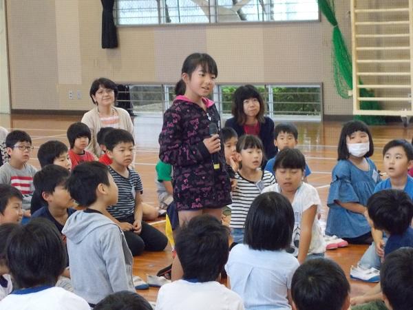 岡原小では、毎月一回、水曜日の朝の時間を利用して、全校集会を開いています。5月29日(水)は児童集会でした。運営委員会の進行で、各委員会の委員長あいさつや活動の紹介などを行いました。