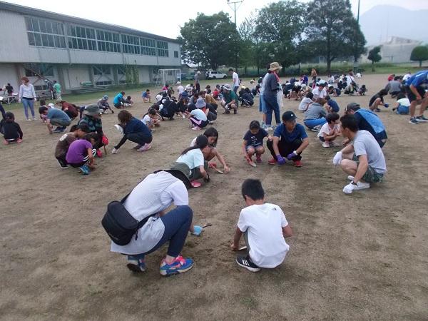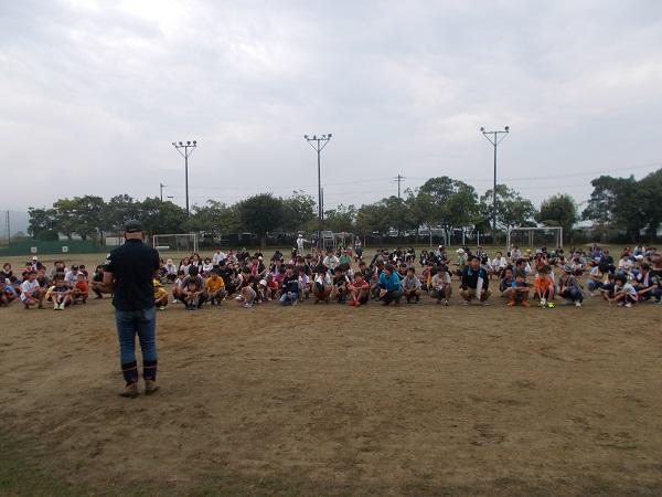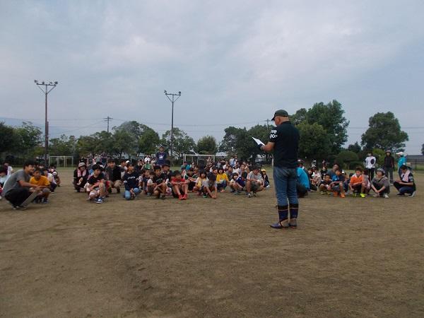 朝早く、たくさんの方にご集合いただきました。運動場にて、全体の流れ、手順の説明と確認です。