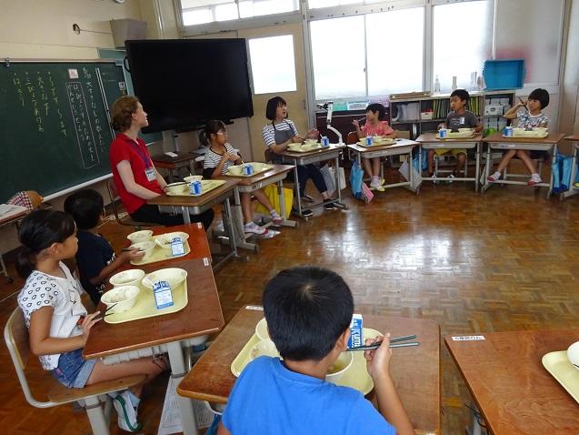 3~6年生は、早速イバ先生と一緒に学習し、2年生は給食を一緒に食べました。「イバ先生の好きな動物は何ですか?」「いつから日本で暮らしているんですか?」など、たくさん質問して楽しい時間を過ごすことができました。