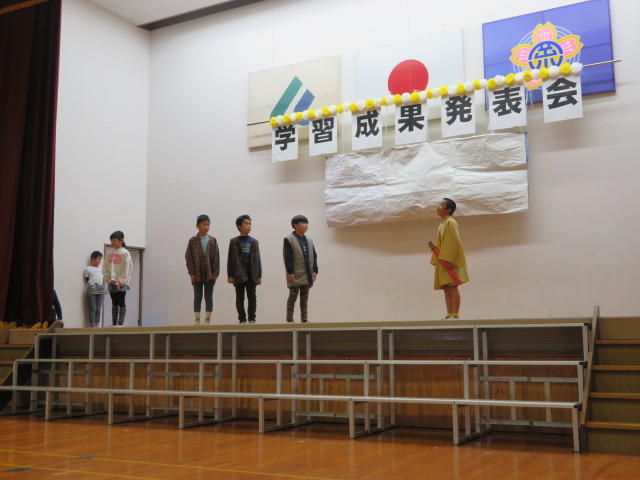 2月2日(日)、本校体育館において、「学習成果発表会」が行われました。書写、図画工作、総合的な学習の時間等での作品を展示するとともに、各学年ごとに、学んできたことを劇などで表現しました。多くの保護者や地域の方々が見守る中、児童は、日ごろの学習の成果を力いっぱい発信することができました。