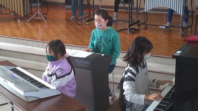 会場は音楽室、観客は児童です。密を避けるために、2学年ずつ招待します。