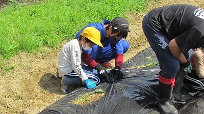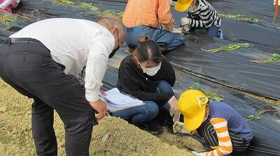 はじめにPTA1学年委員長の岸川さんから植え方を説明していただき、植え付けました。