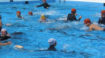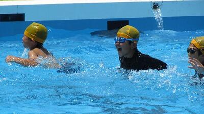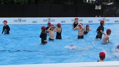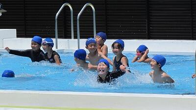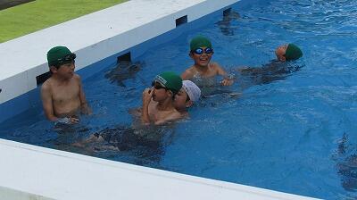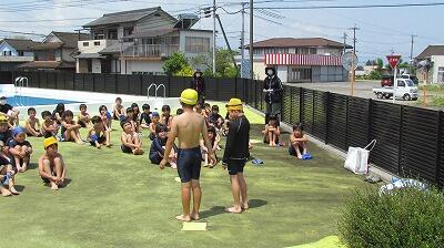 はじめに水泳学習開始の式を行い、各学年でそれぞれの内容で楽しい時間を過ごしました。
