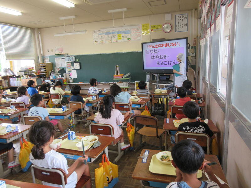 「朝ごはんの大切さ」について、各学年の児童に分かりやすくお話をしてくださいました。