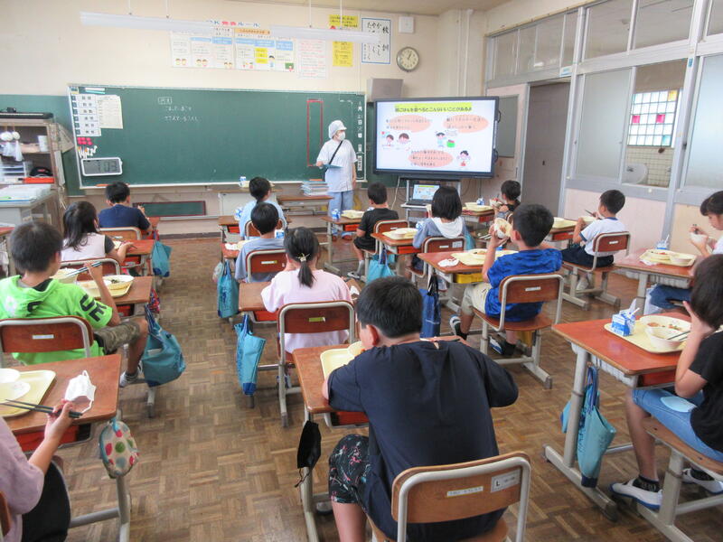 6月20日~22日の給食時間に、あさぎり町学校給食センター 栄養教諭 小山先生による巡回指導がありました。