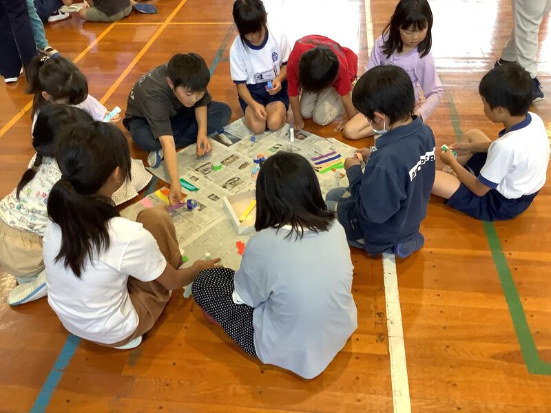 「友達の輪づくり」。輪飾りを協力して作りました。