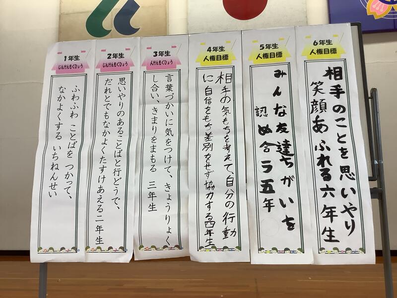 各学級の「人権目標」です。みんなで心がけて、楽しい学校生活づくりに取り組みます。