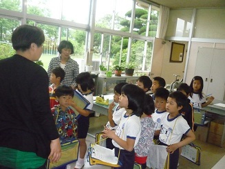 今日は学校探検で、1年生を2年生のお兄ちゃん、お姉ちゃんが教えてまわってくれました。