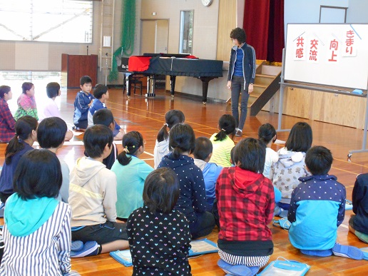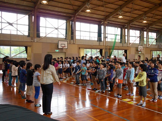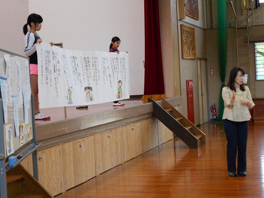 今日は、みんなで「ニコニコルンルン朝ごはん」を歌いました。途中から手話を交えて歌いました。4年生は前に出て元気に歌ってくれました。